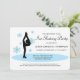 Notre invitation bleue de partie de patinage de glace de flocons de neige comporte la silhouette noire d'un patineur artistique entouré par les flocons de neige bleus. Le dos de l'invitation saute avec un motif bleu de flocon de neige.