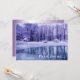 Cette invitation de bon goût et élégante à une partie de solstice d'hiver présente un paysage saisonnier de vacances d'hiver aux nuances de bleu, de violet, de gris, le blanc et le pourpre. Les arbres sont nus. La glace couvre une partie de l'eau mais les belles réflexions des arbres, des nuages et du ciel brillent. La neige entoure l'étang. Le texte arrière et avant peut être facilement personnalisé.