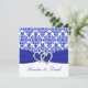 Cette invitation de la douche du couple de cobalt ou de damassé de bleu royal et de blanc a IMPRIMÉE SUR le ruban avec une paire de parties scintillantes de FAUX et les coeurs jointifs par bijoux de diamant là-dessus. Tout le texte est personnalisable et ainsi est le choix de papier. S'il y a des autres articles que vous devez rendre votre événement extra spécial, envoyez svp votre demande à niteowlstudio@gmail.com. L'enveloppe assortie, le carte de remerciements, l'affranchissement, et les joints d'enveloppe sont montrés ci-dessous.