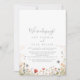 Cette magnifique carte de réception de fleur sauvage boho est parfaite pour une soirée post-elopement moderne. Le design est composé de fleurs sauvages de prairie roses, violettes, rousses, jaunes, bleues poussiéreuses, rouges, bordeaux, assemblées dans un motif floral transparent et délicieux, évoquant la beauté naturelle. Les cartes RSVP sont vendues séparément.