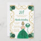 Cette invitation de fête d'anniversaire comprend un cadre doré élégant, une belle princesse aux cheveux blonds et une robe verte, des fleurs et un ballon. C'est parfait pour une fête d'anniversaire.
