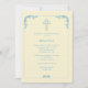 Une invitation religieuse formelle et élégante dans le jaune pâle avec des pois faibles, encadrée d'un motif de défilement vintage. La croix présente peut être traînée à n'importe quel endroit, agrandie ou réduite (+-) ou éliminée. Convient à tous les sacrements religieux.