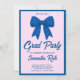 Invitation Blue Gingham Bow Photo Graduation Party