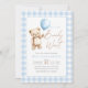 Invitation Blue Gingham Teddy Bear Balloon Boy Baby Shower