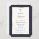Invitation Blue Gold Cross Pois Élégant Script Baptême