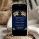 Éblouissez vos invités avec cet élégant faire-part de mariage indien aux éléphants joliment décorés contre un arrière - plan bleu foncé. Ajoutez simplement les détails de votre événement sur ce modèle facile à utiliser pour en faire une invitation unique. Cette carte est entièrement personnalisable. Tous les textes sont modifiables et la couleur arrière - plan peut être facilement changée selon ce qui vous convient le mieux. Retournez la carte pour révéler une fausse texture de feuille d'or au dos de la carte.
