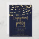 Invitation Blue Gold Rustic Wood & Lights