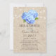 Blue Hydrangea Mason Jar Rustique Burlap Bridal Shower Invitations.