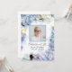 Invités Invitations de se souvenir de votre être aimé après leur passage avec l'élégante Blue Hydrangea Flowers Watercolor Celebration of Life Invitation. Cet élégant invitation commémoratif fleuri et personnalisé présente une photo florale peinte en numériquement aquarelle de fleurs d'hydrangée bleu clair avec un arrière - plan blanc.
