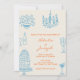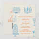 Invitation Blue Orange Hand Drawn Whimsical QR Code Wedding