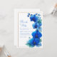 Set a tone of modern elegance for your special day with this stunning botanical design. The centerpiece is a striking gold geometric frame formed by interlocking hexagonal lines, accented with shimmering gold glitter sparkles. Lush branches of vibrant royal blue orchid blooms and fresh green leaves are artfully arranged around the metallic structure, creating a beautiful contrast against the clean, crisp white background. This design perfectly blends contemporary lines with timeless floral beauty. This design is an excellent choice for a modern city wedding, a chic gallery reception, or an elegant evening celebration. It is perfectly suited for couples planning a sophisticated "Royal Blue and Gold" color palette. The clean aesthetic and bold botanical elements make it a versatile match for upscale venues like a contemporary hotel ballroom, a modern art space, or a formal garden setting.