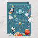 Invitation Blue Space Rocket & Astronaut 1st Trip Around