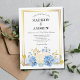 Belle florale bleue et blanche avec cadre bordé d'or faire-part de mariage. Personnalisez tous les champs pour en faire votre propre.