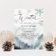 Carte d'invitation pour la fête d'anniversaire du garçon moderne avec aquarelle de la montagne d'hiver avec pins avec flocons de neige bleus. Le texte dit "Winter Wonderland".