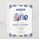 Boy's Berry 1er anniversaire invitation de fête avec le thème du bleuet. Sucré Un cupcake gelé de bleuet avec bordure de bleuet. Berry fun pour le premier anniversaire de la baie de votre enfant!