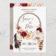 Votre célébration bohème peut être rustique et élégante en même temps. Ce magnifique modèle de Save the Date présente le meilleur des deux mondes. Avec de belles fleurs aquarelles en rose blush, rose burgundy et pêche délicieuse ornant un attrape-rêves bohème avec des plumes et des florales, ce design est sûr d'exciter vos invités dans l'attente de votre grand jour. Correspond à d'autres modèles dans notre boutique pour créer une suite complète et est entièrement personnalisable pour n'importe quelle occasion ! Peut être utilisé pour un mariage, un anniversaire, une douche de mariée ou une baby shower, une remise de diplôme ou tout autre grand événement !