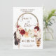 Votre célébration bohème peut être rustique et élégante en même temps. Ce magnifique modèle de Save the Date présente le meilleur des deux mondes. Avec de belles fleurs aquarelles en rose blush, rose burgundy et pêche délicieux ornant un attrape-rêves bohème avec des plumes et des florales, ce design est sûr d'exciter vos invités dans l'attente de votre grand jour. Correspond à d'autres modèles dans notre boutique pour créer une suite complète et est entièrement personnalisable pour n'importe quelle occasion ! Peut être utilisé pour un mariage, un anniversaire, une douche de mariée ou une baby shower, une remise de diplôme ou tout autre grand événement !
