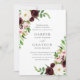 Notre faire-part de mariage Blush Romance entoure vos détails du jour de mariage avec des amas de fleurs d'aquarelle en ivoire, rose vif et marsala bordeaux avec feuillage botanique vert luxuriant. Ce design élégant accueille des noms plus longs ou des noms intermédiaires. Visitez notre collection Blush Romance pour plusieurs styles alternatifs et pièces assorties.
