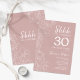 Blush rose et blanc surprise 30e anniversaire invitation. Le design féminin moderne présente des accents botaniques et des caractères typographiques. Elégante carte invitation florale parfaite pour une célébration anniversaire surprise femme élégante. Invitations Zazzle imprimées ou téléchargement instantané modèle imprimable numérique.