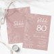 Blush rose et blanc surprise invitation de 80ème anniversaire. Le design féminin moderne présente des accents botaniques et des caractères typographiques. Elégante carte invitation florale parfaite pour une célébration anniversaire surprise femme élégante. Invitations Zazzle imprimées ou téléchargement instantané modèle imprimable numérique.