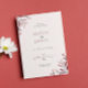 Invitación de boda boho chic con detalles decorativos de ramas y hojas en tonos rojos y rosas y tipografía sencilla. Edita fácilmente el contenido de este producto en el botón personalizar o añade tus propios detalles con la opción editar diseño