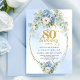 Invitation Bohemian Blue Peony Floral Gold Frame 80th Invite