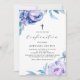 Invités Invitations avec cette invitation à la confirmation à la floraison violette. Il présente des illustrations aquarelle de fleurs de pivoines avec motif floral assorti. Personnalisez en ajoutant vos propres détails. Cette invitation à la pivoine violette est parfaite pour les confirmations d'automne et d'hiver.