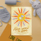 Fêtez l'arrivée de votre petit soleil avec notre invitation baby shower "Voici le Fils"! Ce design charmant présente un soleil géant dessiné à la main dans l'aquarelle, avec un petit garçon mignon niché au centre, capturant parfaitement l'ambiance boho et ludique de l'événement. L'expression "Voici le Fils" est élégamment affichée en dessous, ajoutant une touche de chaleur à l'invitation. Les tons jaune, doré, orange et violet clair créent une atmosphère joyeuse et accueillante. Sur le dos, des codes QR pratiques facilitent l'accès aux RSVP et au registre des cadeaux. Cette invitation est non seulement adorable, mais aussi pratique pour une célébration délicieuse.