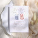 Un genre boho révèle l'invitation avec une aquarelle peinte à la main illustration de vêtements bleus et roses sur une ligne de vêtements. Le dessus de la carte indique "Garçon ou Fille ?" mais peut être édité sur "Lui ou Elle ?", "Bleu ou Rose ?", "Baby shower", ou tout titre personnalisé. Les détails de l'événement sont dans une mise en page moderne avec les noms des parents en écriture de script élégante. Les cartes sont retournées à un mignon motif d'articles pour bébés, y compris des chaussettes, des chaussures, des jouets et des petites étoiles orange. Visitez la collection liée sur cette page ou visitez notre magasin pour plus d'invitations pour des douches pour bébés.