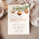 Invitation minimaliste de baby shower neutre genre avec branche de pin aquarelle décorée avec des ornements de Noël.