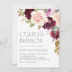 Invités Invitations à votre événement avec cette invitation personnalisée à brunch en couple floral. Il présente un bouquet floral aquarelle de pêche, des fleurs violettes et bordeaux aux accents verts. Personnalisez en ajoutant vos détails. Cette invitation au brunch aux couples de fleurs bordeaux conviendra parfaitement aux douches pour les couples du printemps et de l'automne.