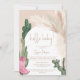 Bonjour bébé ! Célébrez l'arrivée à venir avec cette invitation au baby shower de saumons boho magnifiquement conçue, avec gazon de pampas doux, cactus verts, et une botte de cowboy rose ludique. Les tons neutres associés à la touche occidentale créent une invitation élégante et charmante, idéale pour un baby shower à thème désertique. Personnalisez les détails pour un événement unique et mémorable qui allie élégance rustique avec une touche de fantaisie.