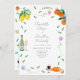 Magnifique faire-part de mariage moderne coloré à l'aquarelle avec des botaniques simples, oranges et citrons à thème idéal pour un mariage d'été ensoleillé. L'oeuvre originale de l'artiste Catherine Sweetman comprend du feuillage, des fleurs sauvages, du fromage et du vin, des notes musicales et des flûtes de mousseux. Écriture manuscrite fantaisiste et script de typographie moderne avec facile à personnaliser les modèles pour ajouter des noms, la date et d'autres informations essentielles ainsi que les initiales de mariée et grooms sur l'illustration étiquette de bouteille de vin mousseux. La palette de couleurs comprend le citron, le jaune, l'orange, le vert, le bleu, le violet et le rose.
