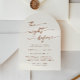Cette invitation à la répétition boho chic en arc de crème est parfaite pour une nuit minimaliste avant la répétition mariage. Le design bohème moderne en terre cuite neutre orangée et crème présente une calligraphie rustique simple au style unique mais classique.