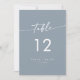 Ces numéros de table de mariage bleu croustillant sont parfaits pour un mariage minimaliste. Le design moderne et bohème, bleu clair neutre, présente une calligraphie rustique simple, avec un style unique mais classique. La conception s'imprime à l'avant et à l'arrière. Customisez vos numéros de table avec vos noms et votre date. Personnalisez chaque numéro de table dont vous avez besoin, en ajoutant chacun à votre panier individuellement.