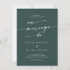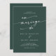 Ce chic boho vert émeraude code QR français faire-part de mariage est parfait pour un mariage minimaliste. Le design bohème moderne et moderne de la forêt de chasseurs, sombre et maussade, se compose d'une calligraphie rustique simple au style unique mais classique. Ajoutez un code QR au dos de votre invitation de mariage pour que vous puissiez facilement vous inscrire à RSVP, voir les détails ou les deux.