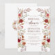 Élégamment raffinée, cette invitation de baby shower bohème d'automne présente une délicate couronne de fleurs sauvages séchées dans des tons chauds marron, terre cuite et riche burgundy. Accentué d'une écriture calligraphique moderne dans un ton burgundy sophistiqué, ce design capture magnifiquement l'essence d'une célébration de baby shower automnal.