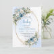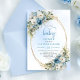 Invitation Boho Dusty Blue Flowers Gold Script Baby Shower