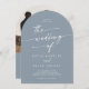 Cette faire-part de mariage d'arc de code QR et photo bleu bouho est parfaite pour un mariage minimaliste. Le design moderne et bohème, bleu clair neutre, présente une calligraphie rustique simple, avec un style unique mais classique. Personnalisez le dos de votre invitation de mariage avec votre photo fiançailles préférée. Inclure un code QR pour que l'invité puisse facilement RSVP, afficher les détails ou les deux.