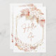 Boho Faux Rose Gold Bonjour 40 Invitation Anniversaire Or moderne invitation géométrique 40e anniversaire avec une tête de calligraphie en faux rose, et ligne géométrique avec quelques arrangements boho verger, pampas herbe et pin feuilles. Les détails de la fête sont au dos.