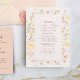 Une faire-part de mariage boho avec une touche moderne. Un cadre fleuri fleur sauvage rose doux et jaune pâle entoure les informations mariages. Idéal pour le printemps, l'été d'automne.