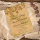 Faire-part fiançailles très élégante à l'ambiance vintage, le design présente un beau motif floral presque chic et défraîchi. Un bijou en métal doré décoratif est accroché au sommet.
