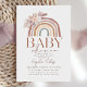 Ces adorables invitations à la douche pour bébé présentent un arc-en-ciel boho branché avec des fleurs d'aquarelle.