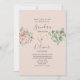Elégant, moderne, boho, rose floral faire-part de mariage poussiéreux avec coeur de corde or, fleurs d'aquarelle, verdure et script de calligraphie simple.