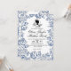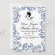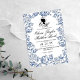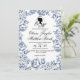 Elégante carte mariage Bridgerton bleu poussiéreux avec calligraphie de script blanche et élégante. Invitation classique et élégante, simple et moderne.
