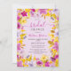 Célébrez l'amour avec cette unique invitation à la douche nuptiale florale peinte à la main. Le design boho-moderne présente des teintes vives de violet, vert, lavande et jaune, créant une atmosphère audacieuse et joyeuse sur la lavande pastel. Les flancs d'aquarelle lâche apportent une touche de fantaisie, tandis que les confettis de parties scintillant d'or simili apportent une touche de glamour. La police de typographie de script moderne et élégante ajoute un élément sophistiqué et élégant à l'invitation. Parfait pour une fête d'inspiration bohème, cet invitation original illustré à la main donne le ton d'un événement joyeux et mémorable.