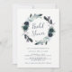 Cette invitation branchée et élégante à la douche nuptiale comprend une couronne composée de fleurs de pivoines bleu marine, de feuilles luxuriants, de baies et de plumes.