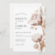 Un faire-part de mariage terreux, rustique, de style boho, avec des fleurs de terre cuite crème et légère avec un élégant type serif jumelé à une belle typographie script. Un style bohème bio sobre. Disponible en version imprimée, en téléchargement numérique ou les deux.