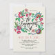 une invitation à la fiançailles de style bohème avec fleurs sur un arrière - plan rayé bleu turquoise orange