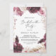Cette invitation à la fête de bachelorette en herbe de pampas boho est parfaite pour une soirée d'été pour dames. L'aquarelle fleurie présente des fleurs bohèmes bordeaux et roses rousses avec des sprigs de pampa neutres et des feuilles de palmiers séchés dorés.